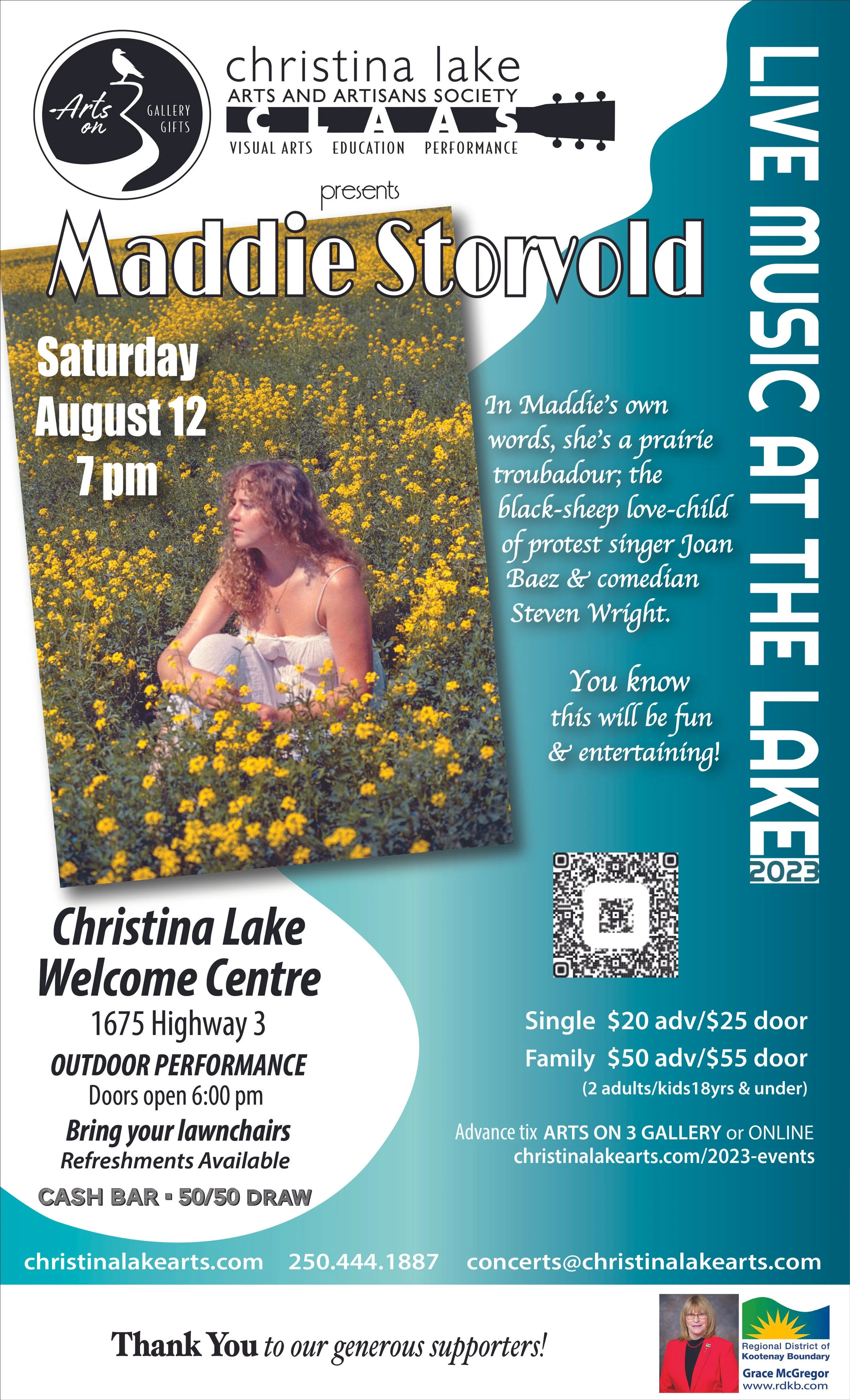 Aug 12 7:00 PM19:00 Maddie Storvold August 12, 2023 Saturday, August 12, 2023 7:00 PM 10:00 PM 19:00 22:00 Arts on 3 (map) Google Calendar ICS Buy Tickets View Event →